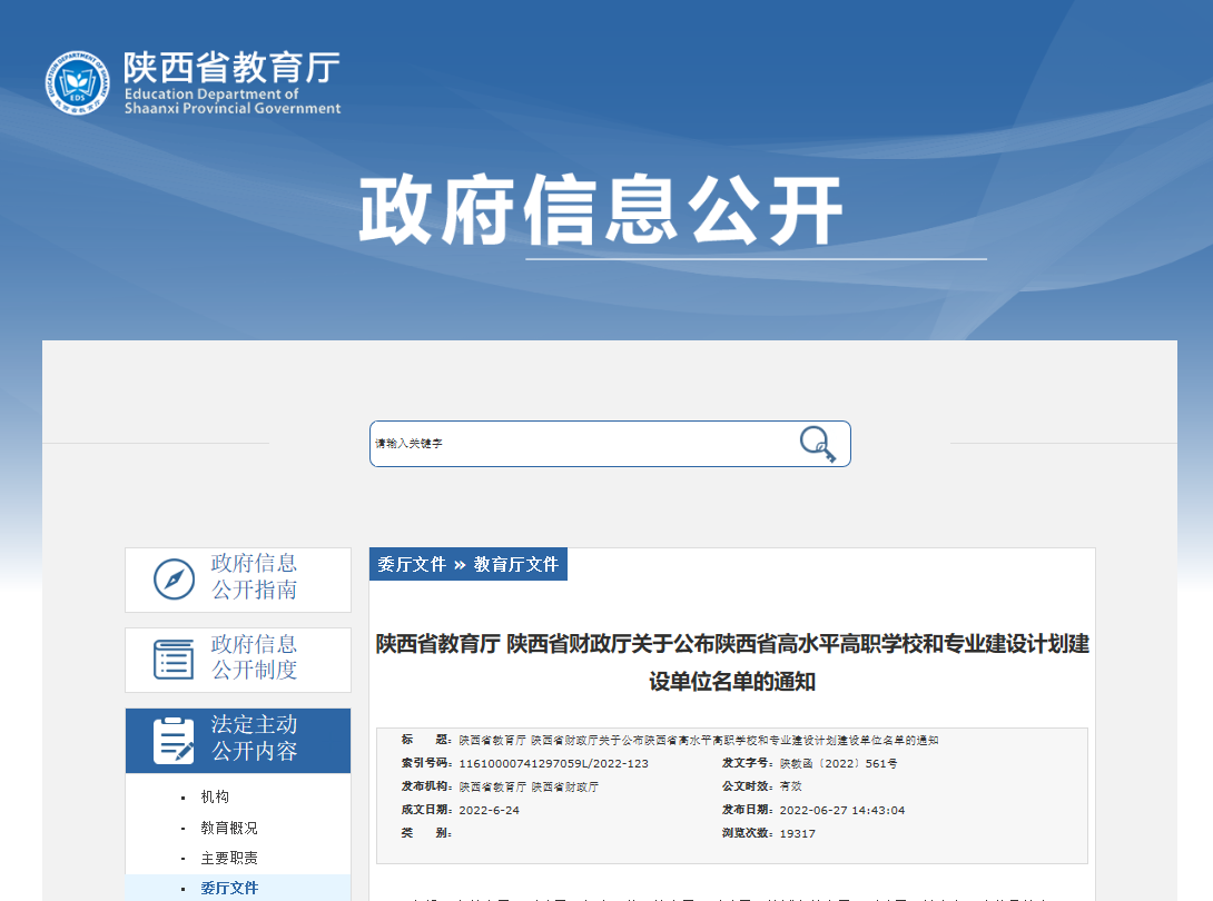 “双高计划”作为《国家职业教育改革实施方案》的重点项目,是国家职业教育高质量发展的重要举措。此次成功入选陕西省“双高计划”是对校院多年来整体办学水平和综合办学实力的充分肯定,也体现了学校深入贯彻落实《国家职业教育改革实施方案》的显著成效。