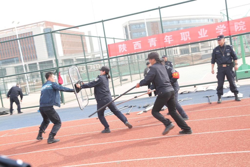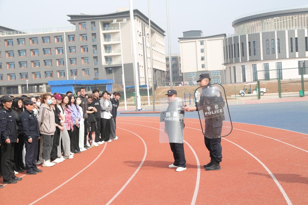 3月7日,保卫处在长安校区操场开展反恐防暴专业化培训及演练活动。副校(院)长宁建飞出席,学生处处长祁志、长安分局巡特警大队副大队长韩俊、杜曲派出所所长薛明、教导员刘利菊、保卫处全体工作人员及200余名学生参加了培训,保卫处处长姚书芳主持活动。