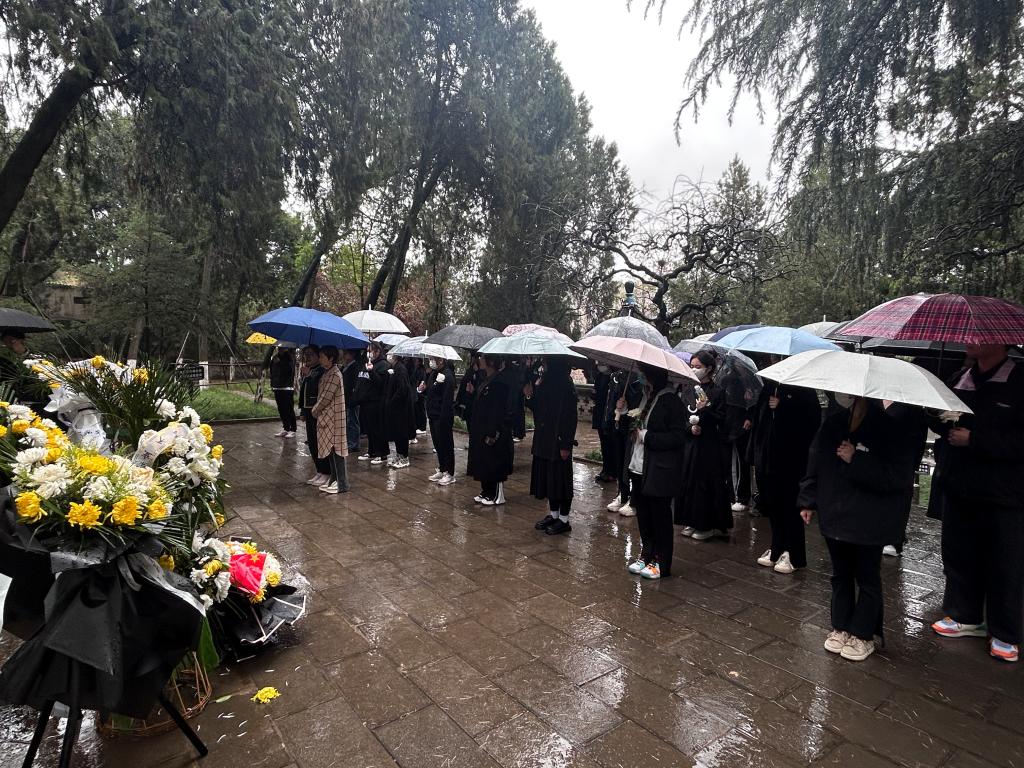 活动开始,全体师生肃立默哀,向英烈敬献鲜花并鞠躬致敬。梁菀华为烈士整理挽联,告慰烈士忠魂,寄托无限哀思。学生代表费传乘、白宇为烈士致悼词,代表全体同学表达对英雄先烈的深深的哀悼和崇敬,并表示作为新时代青年必将继承和发扬革命先烈光荣传统,热爱伟大祖国,坚定理想信念,锤炼过硬本领,矢志艰苦奋斗。