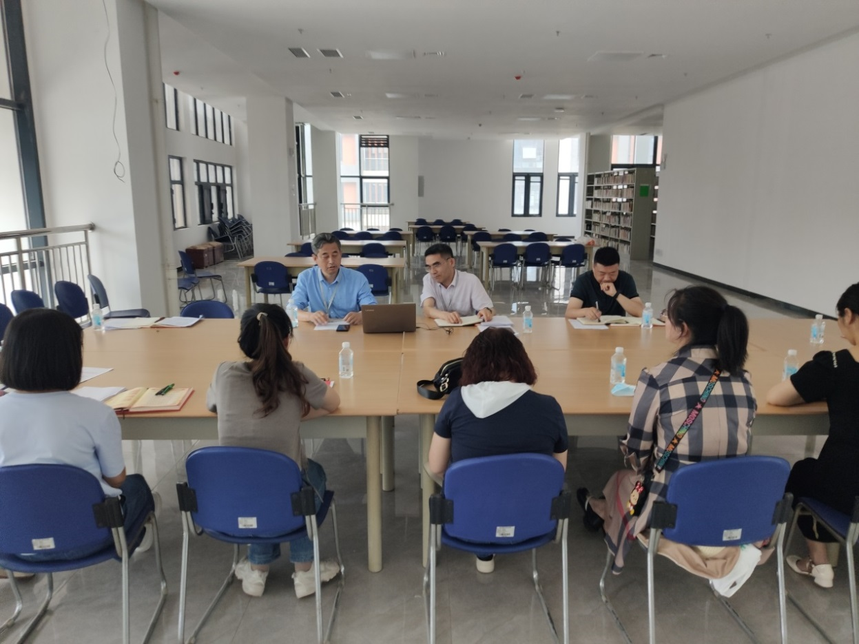 王涛、罗茜茜、黄珂、刘光瑞等工作人员分别汇报了图书馆工作的总体情况、历史发展、搬迁工作,重点汇报了图书馆新馆的建设工作,包括新馆功能布局、建设方案、标识标牌设计、安全管理等多方面内容。
