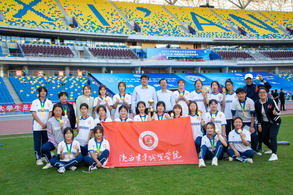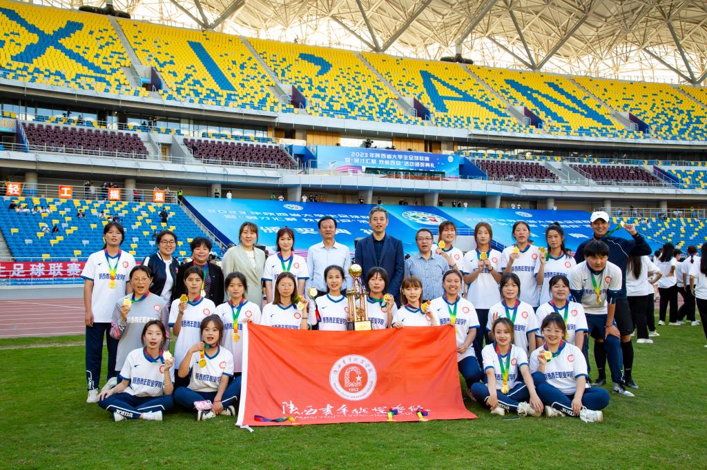 2023 年陕西省大学生足球联赛是实行“乙类乙管”后陕西省举办的第一项大学生大型赛事,得到全省高校师生的积极响应。在为期一个月的比赛时间里,来自全省70所高校的102支足球队,3000名运动员、教练员、裁判员分别在西安市七所大学和西安奥体中心进行了246场比赛,最终我院女子足球队顽强拼搏以全胜的成绩勇夺陕西省大学生足球联赛(三级联赛)冠军,这也是学院历史上第一个省级学生体育比赛团体冠军。