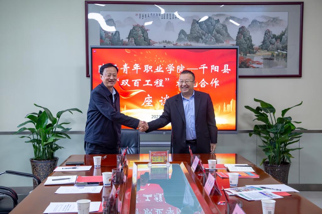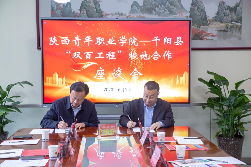 座谈会上,梁菀华介绍了陕西省团校(新葡8883官网AMG官网)的基本情况和帮扶工作计划,温锋科与梁永明共同签订了《新葡8883官网AMG官网助力千阳县乡村振兴实施“双百工程”帮扶工作方案》。