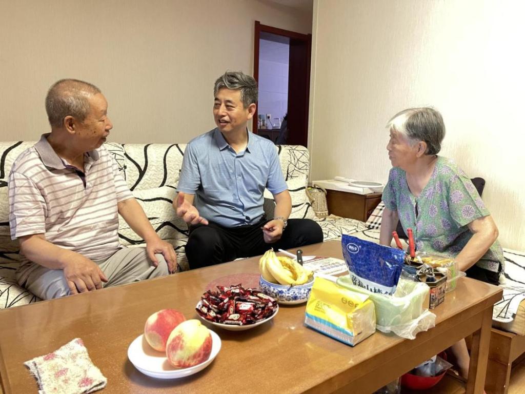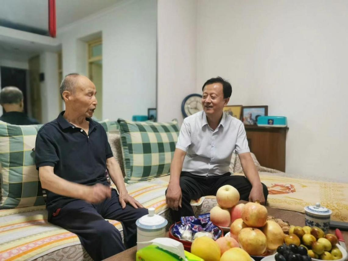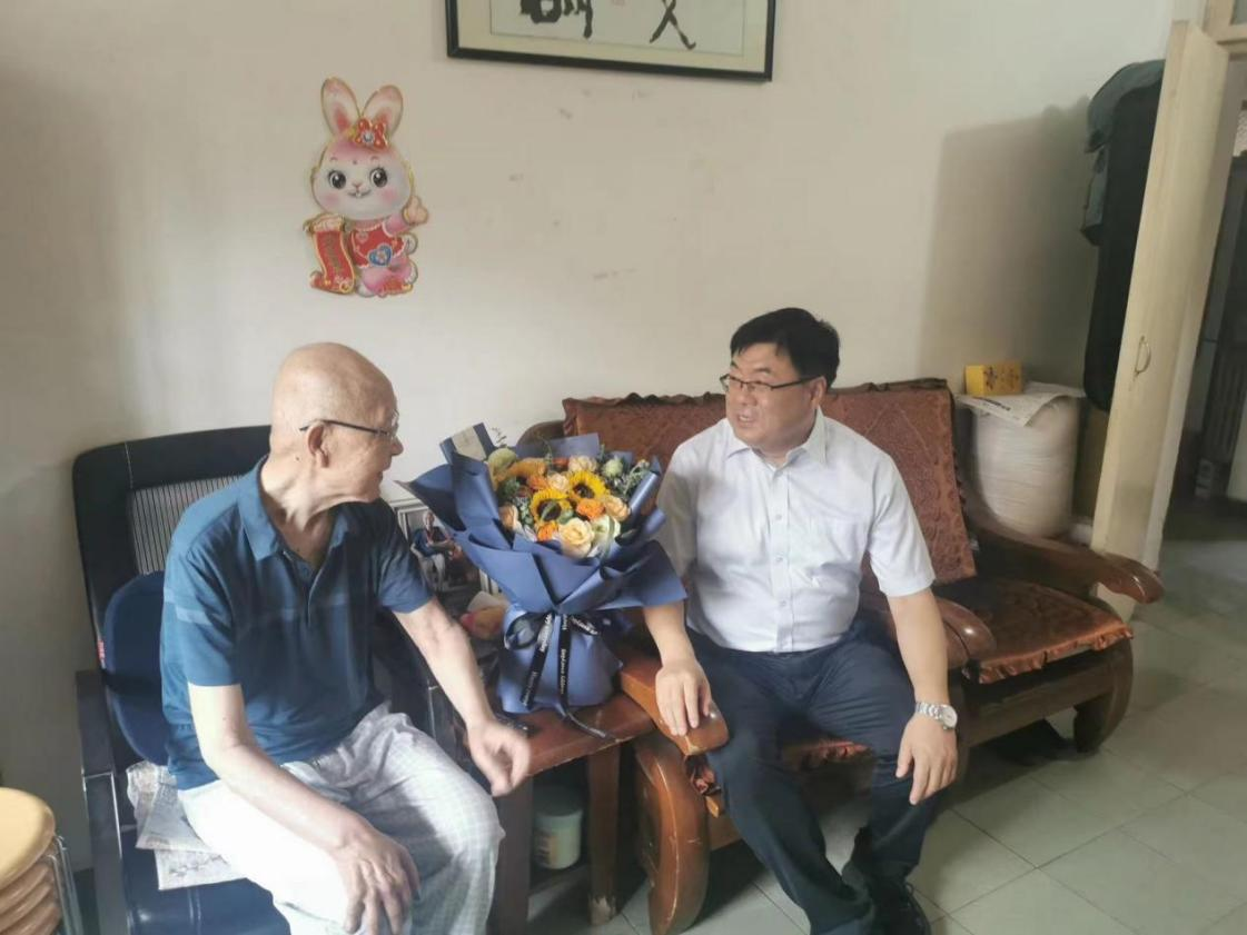 在退休老党员王克敏家中,党委副书记、校(院)长刘瑞明亲切地唠家常,送上祝福的鲜花以及亲切的慰问。