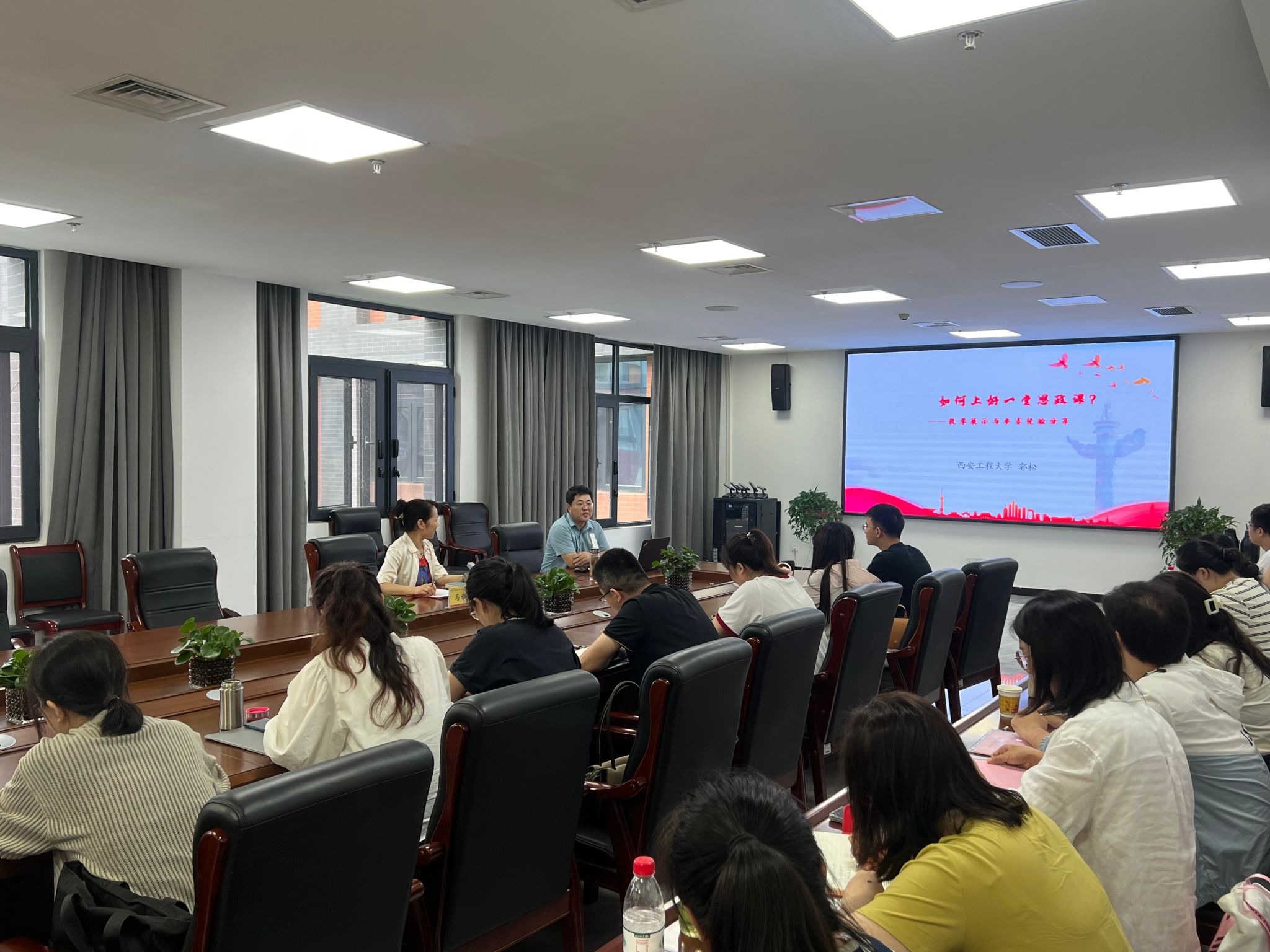 7月9日,马克思主义学院特邀第二届全国思想政治理论课教学展示活动特等奖、陕西省首届思政课大练兵“教学标兵”获得者、西安工程大学马克思主义学院副院长郭松教授来院,作题为《如何讲好一堂思政课——教学展示与经验分享》报告。马克思主义学院院长马雅玲主持,全体思政课教师参加。