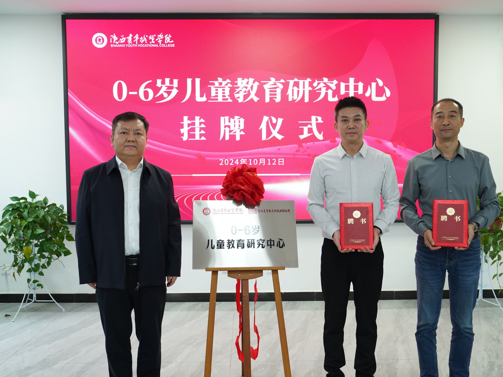 10月12日,我院与陕西墨智教育科技有限公司校企共建“0-6岁儿童教育研究中心”揭幕仪式在长安校区举行。院长马东红、党委副书记梁菀华、副院长韩凯军、陕西墨智教育科技有限公司总经理田江涛,兴平市教育局督导办副主任史文刚及部分幼儿园代表出席。仪式由科研处处长党彩莉主持,教务处、学前教育系负责人,学前教育专业教师代表、学生代表及相关人员一同参加。