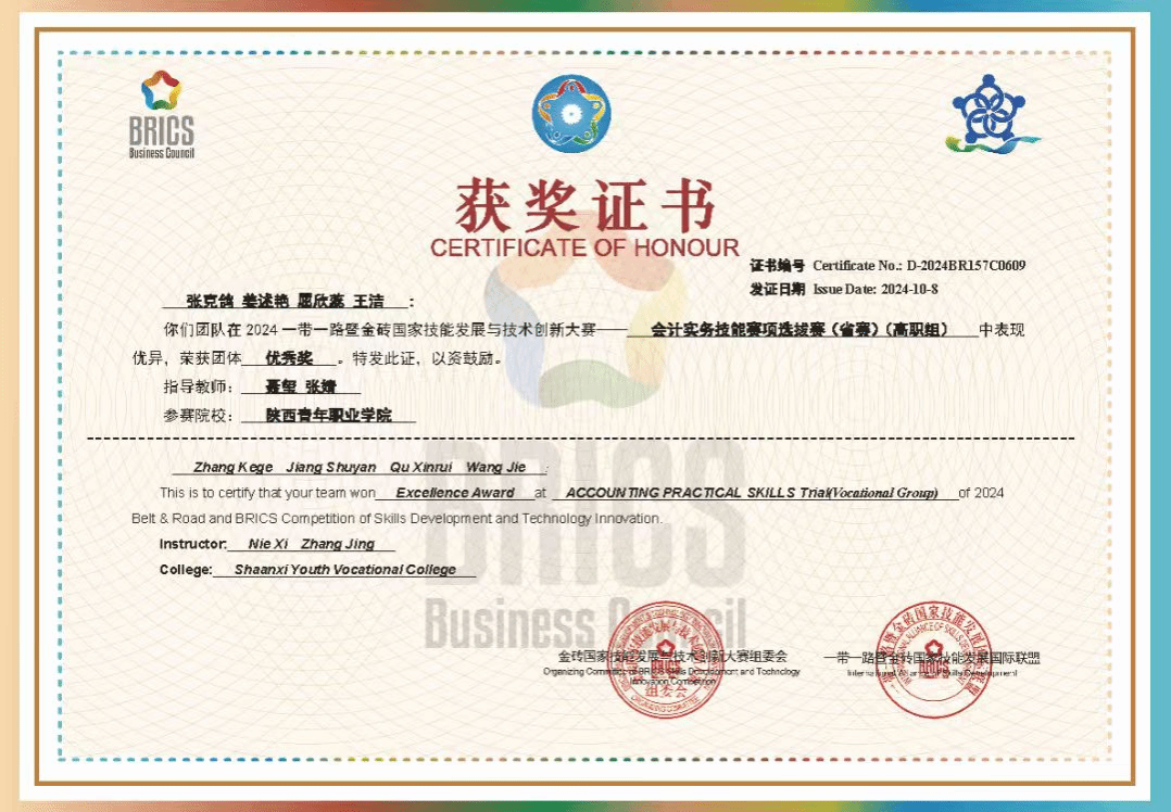 2024一带一路暨金砖国家技能发展与技术创新大赛会计实务技能竞赛由金砖国家工商理事会中方理事会主办,厦门网中网软件公司承办,于9月28日采用团体赛方式线上举行,来自全国各地的644支参赛队伍同台竞技。比赛旨在深入探索新时代高素质高层次技术技能型财会人才培养模式,推进以赛促学,以赛促训,促进人工智能、大数据等新一代信息技术与财经专业的深度融合,将数字化转型优势充分赋能财经人才培养,是高职院校财经商贸大类中国赛区国内赛(国际级),比赛级别高、参赛院校多。