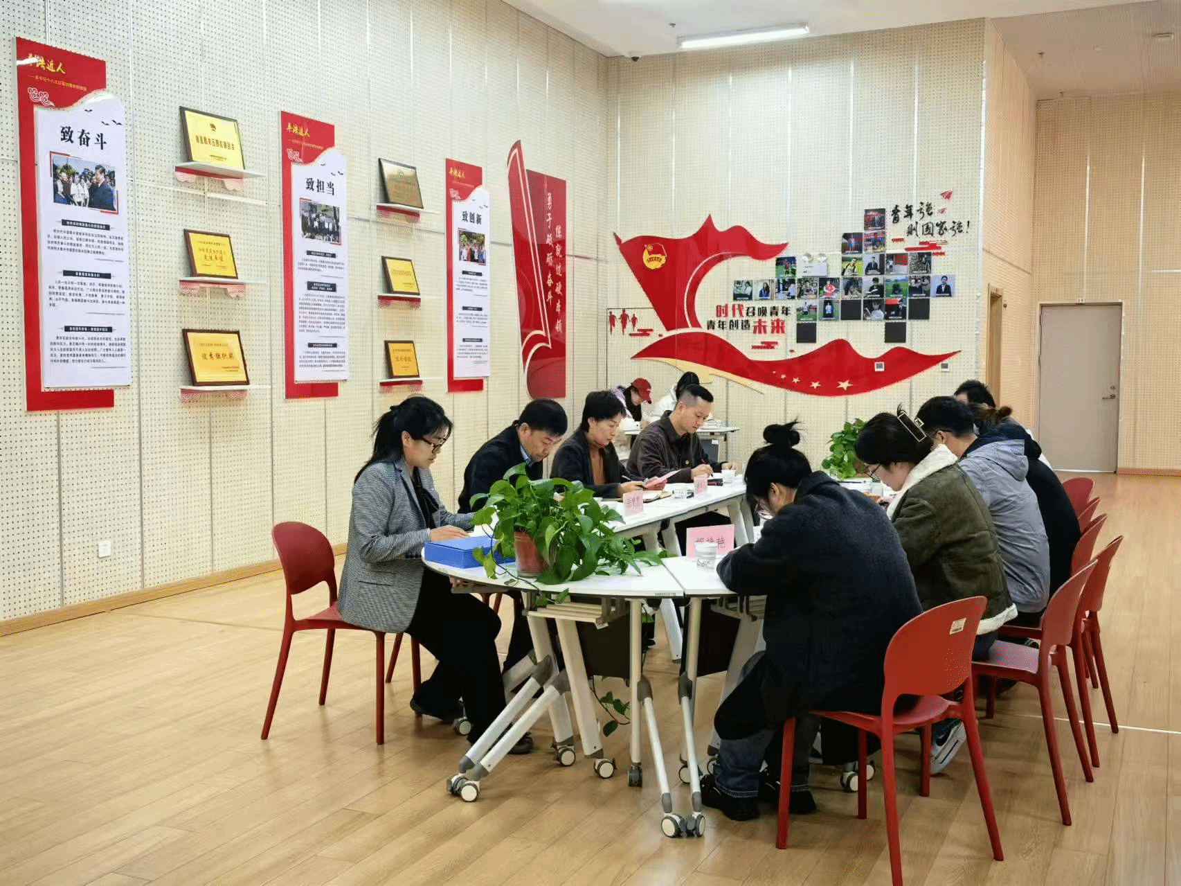 11月29日,校党委书记张建宽在活动中心青年大讲堂同各系新一届团委书记集体谈话。党委副书记梁菀华主持会议。