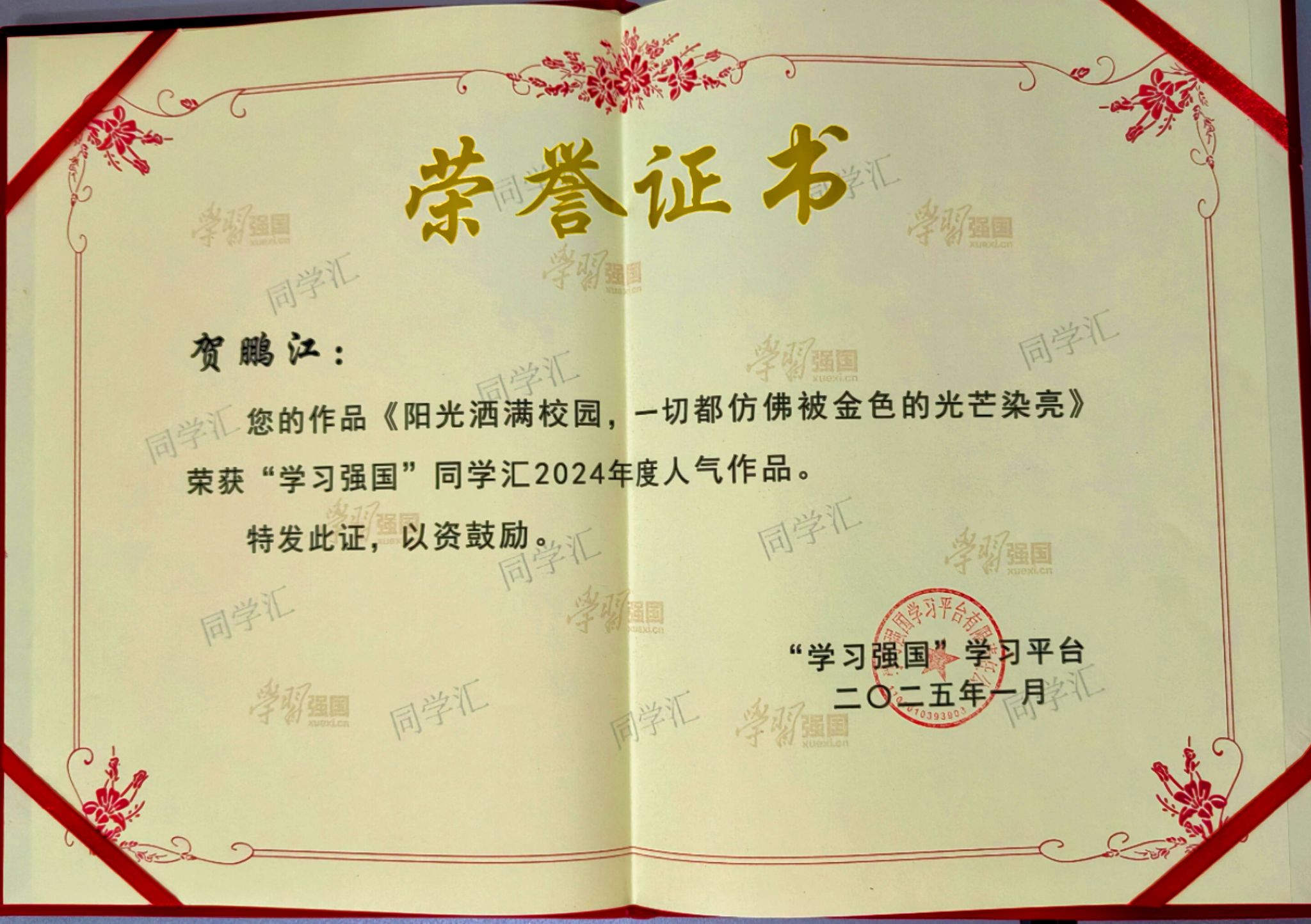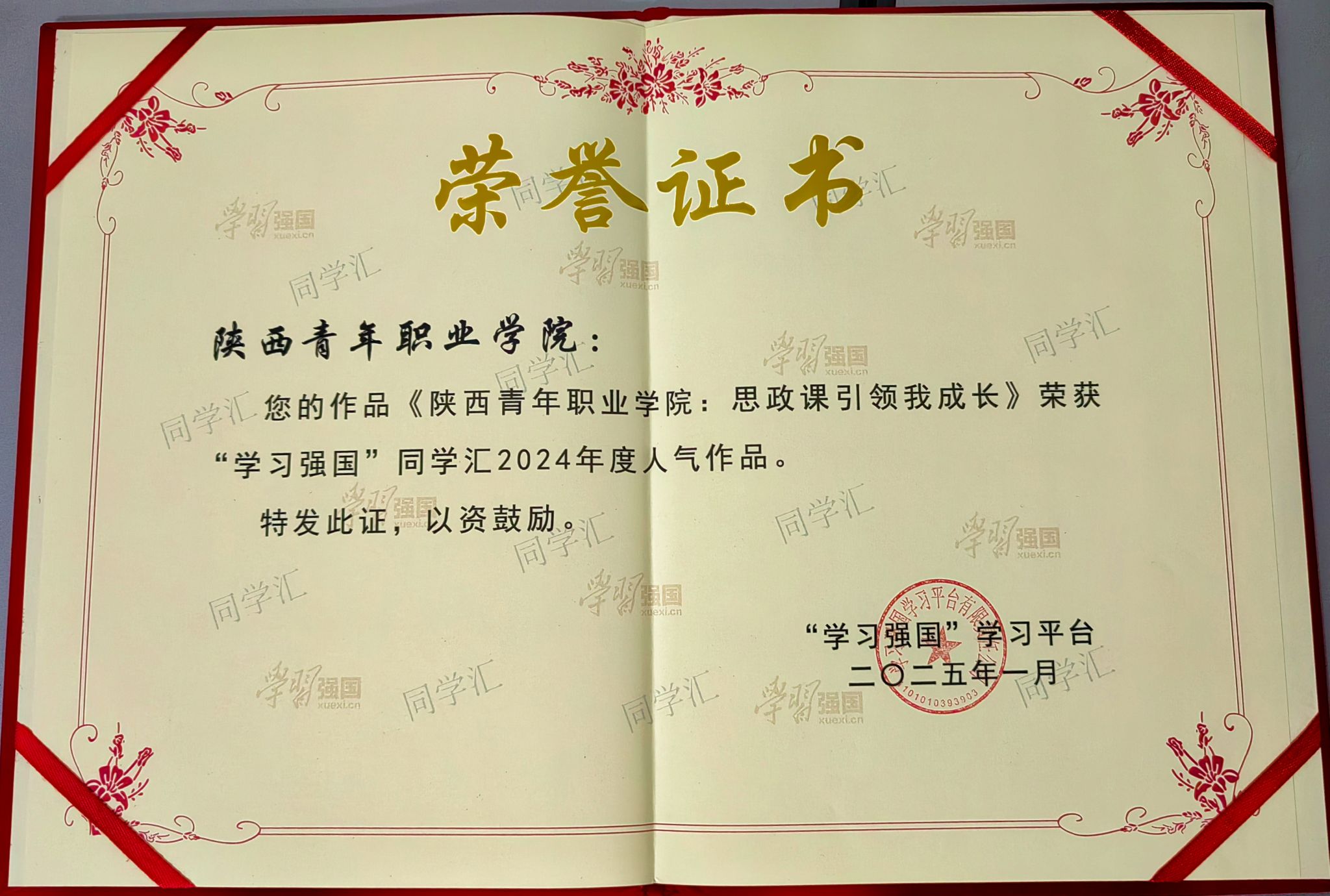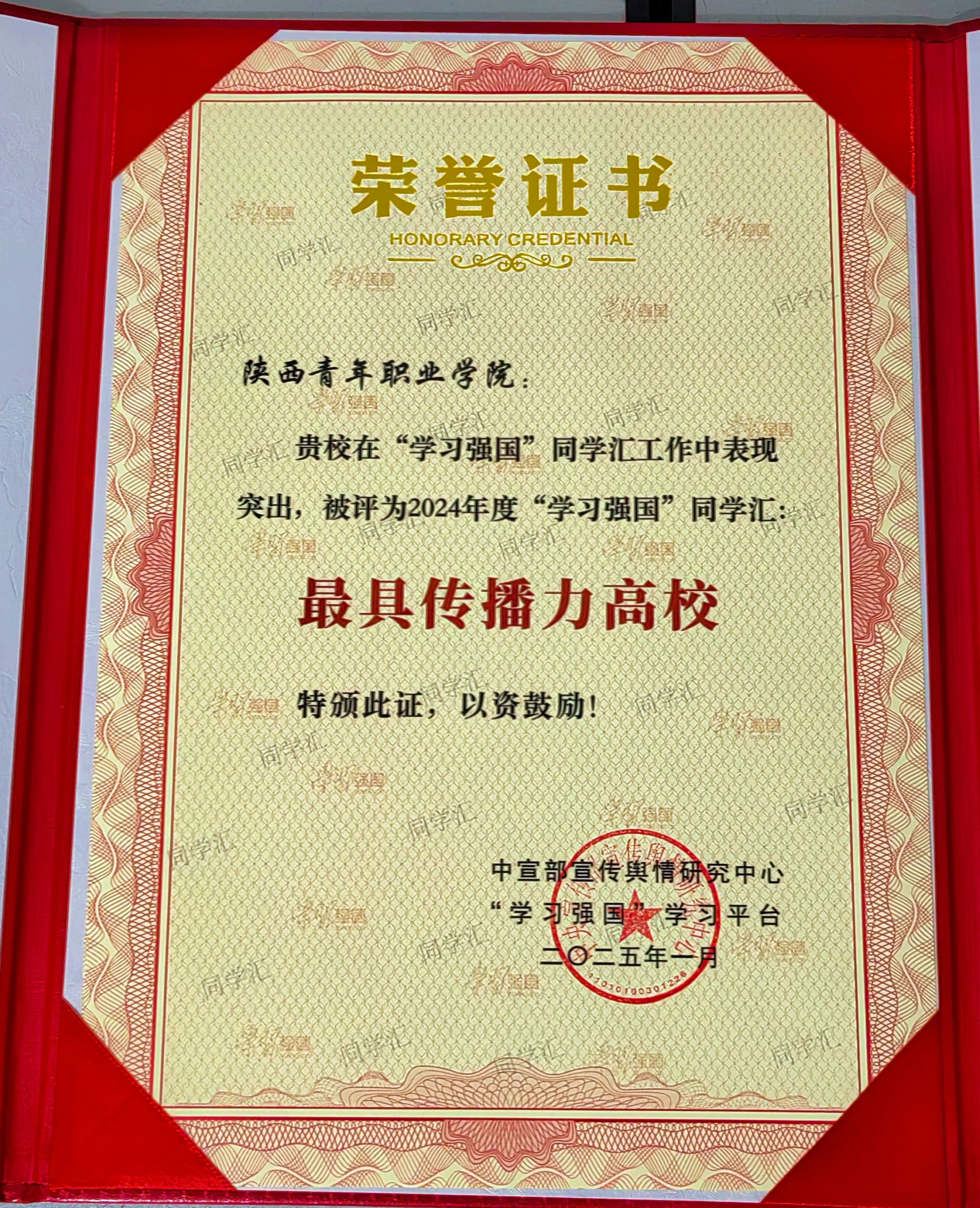此次“学习强国”学习平台向全国52所高校授予了“最具传播力高校”荣誉称号,其中,陕西省有8所高校,新葡是全省唯一获此项殊荣的高职院校。2024年12月,“学习强国”学习平台从2024年同学汇上线的5万多件作品中精选400件进行集中展示,最终评选出100个年度人气作品(高校)、100个年度人气作品(个人)和50个2024年度高校融媒团队,新葡的“思政课引领我成长”“阳光洒满校园”等2件作品分获人气作品高校奖和个人奖。