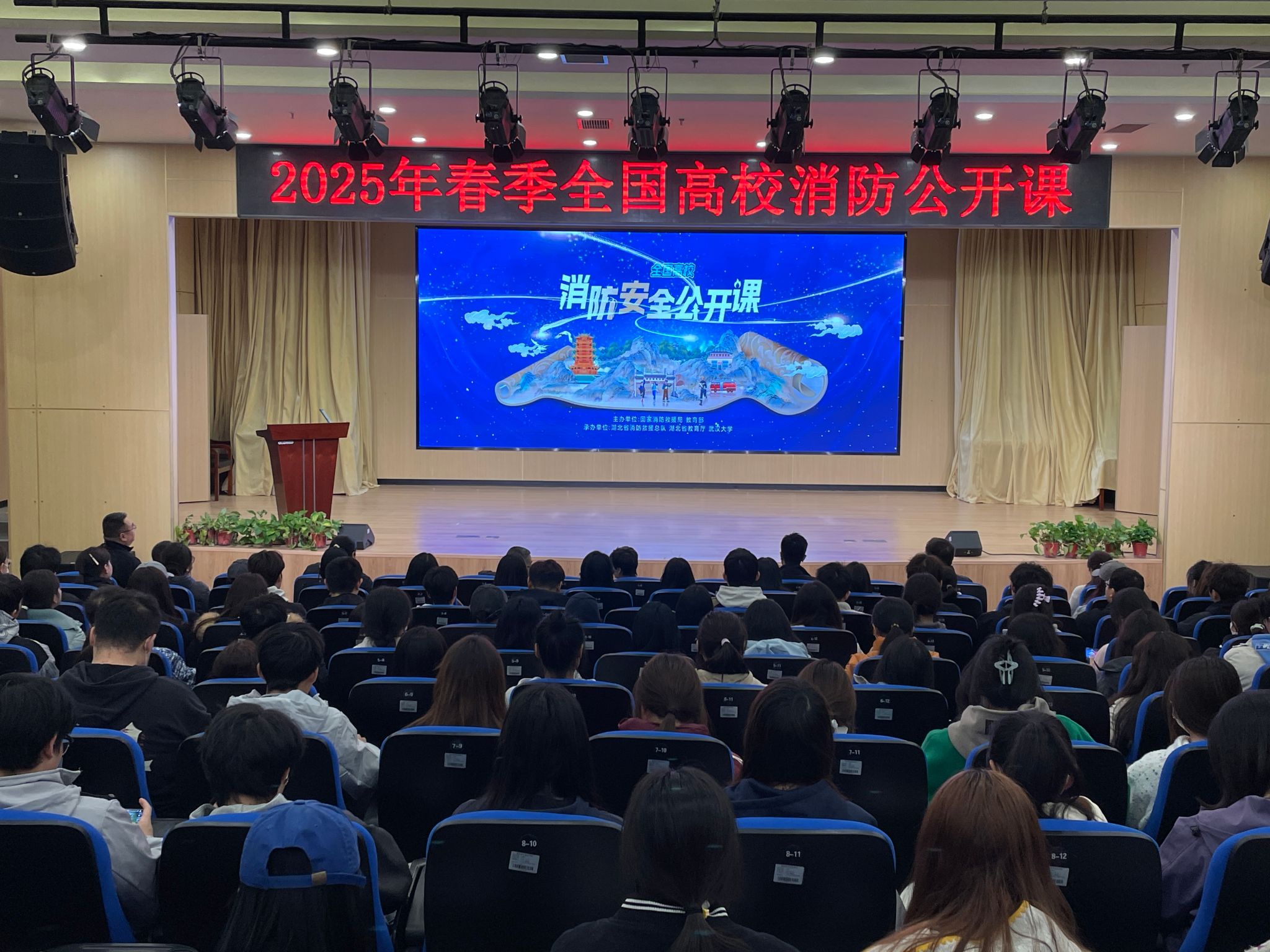 3月27日,为进一步提高广大学生消防安全意识和自防自救能力,坚决防范和遏制火灾事故发生,按照省教育厅办公室、省消防救援总队要求,学生处、教务处、保卫处联合组织在校学生观看了 2025年春季全国高校消防安全公开课。学校党委副书记梁菀华,学生处、教务处、保卫处主要负责人,驻校民警、各系(院)分管学生工作负责人和当日值班干部,2023级、2024级全体在校学生共计5000余人分别在主会场、分会场观看。