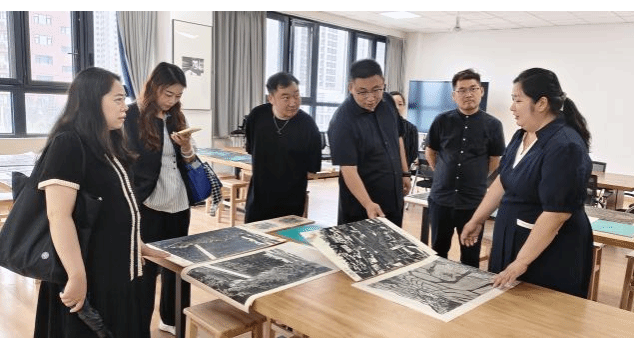 授牌仪式结束后,双方一同参观了版画实训室、国画实训室以及艺术考察展览,西安市美术家协会策展专业委员会一行对学校在艺术教育发展与创新方面的成果表示充分肯定。