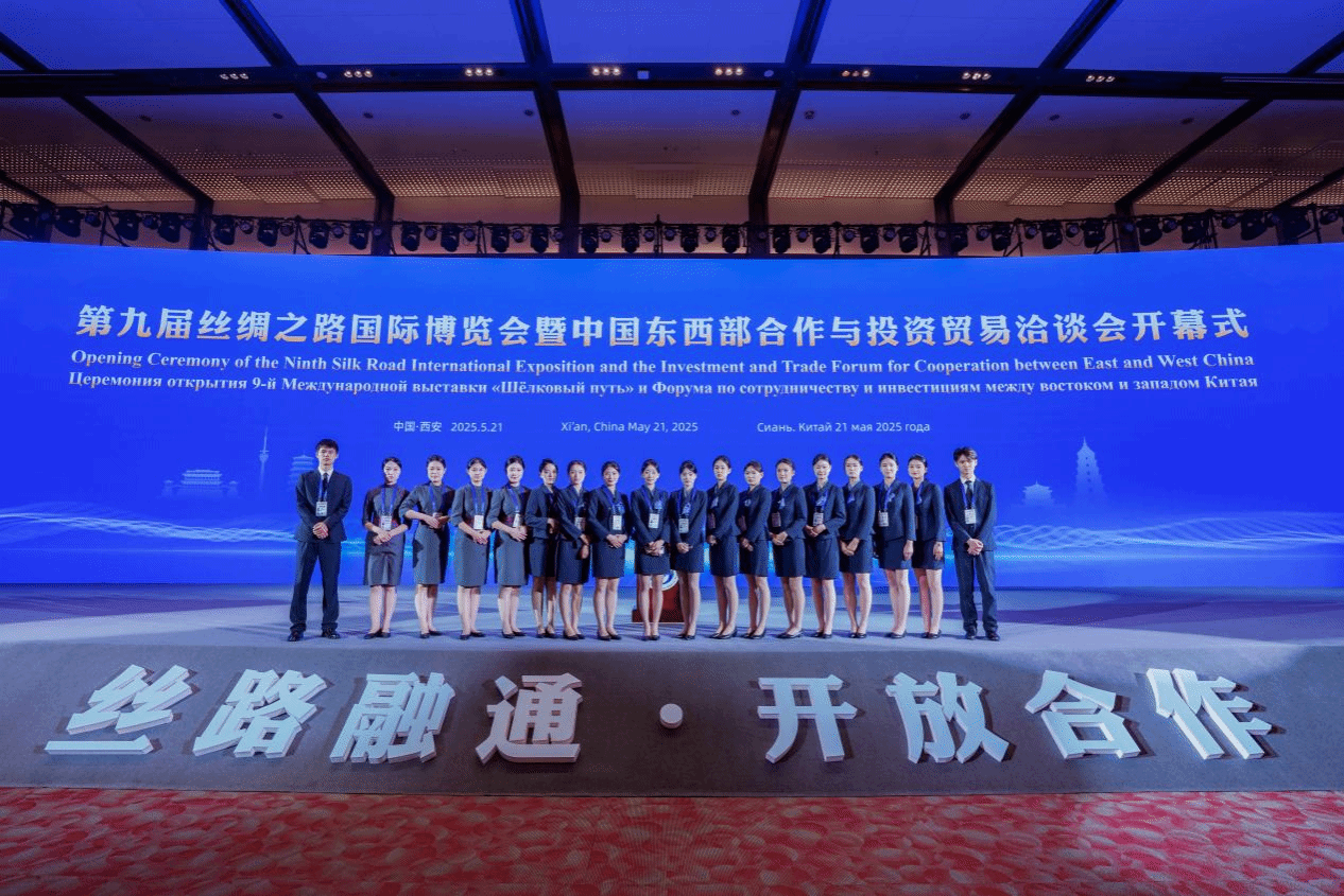 5月21日至25日,第九届丝绸之路国际博览会暨中国东西部合作与投资贸易洽谈会在西安国际会展中心召开,新葡空中乘务、高速铁路客运服务专业24名学生经过严格选拔,全程参与了本次大会的会议服务保障工作。