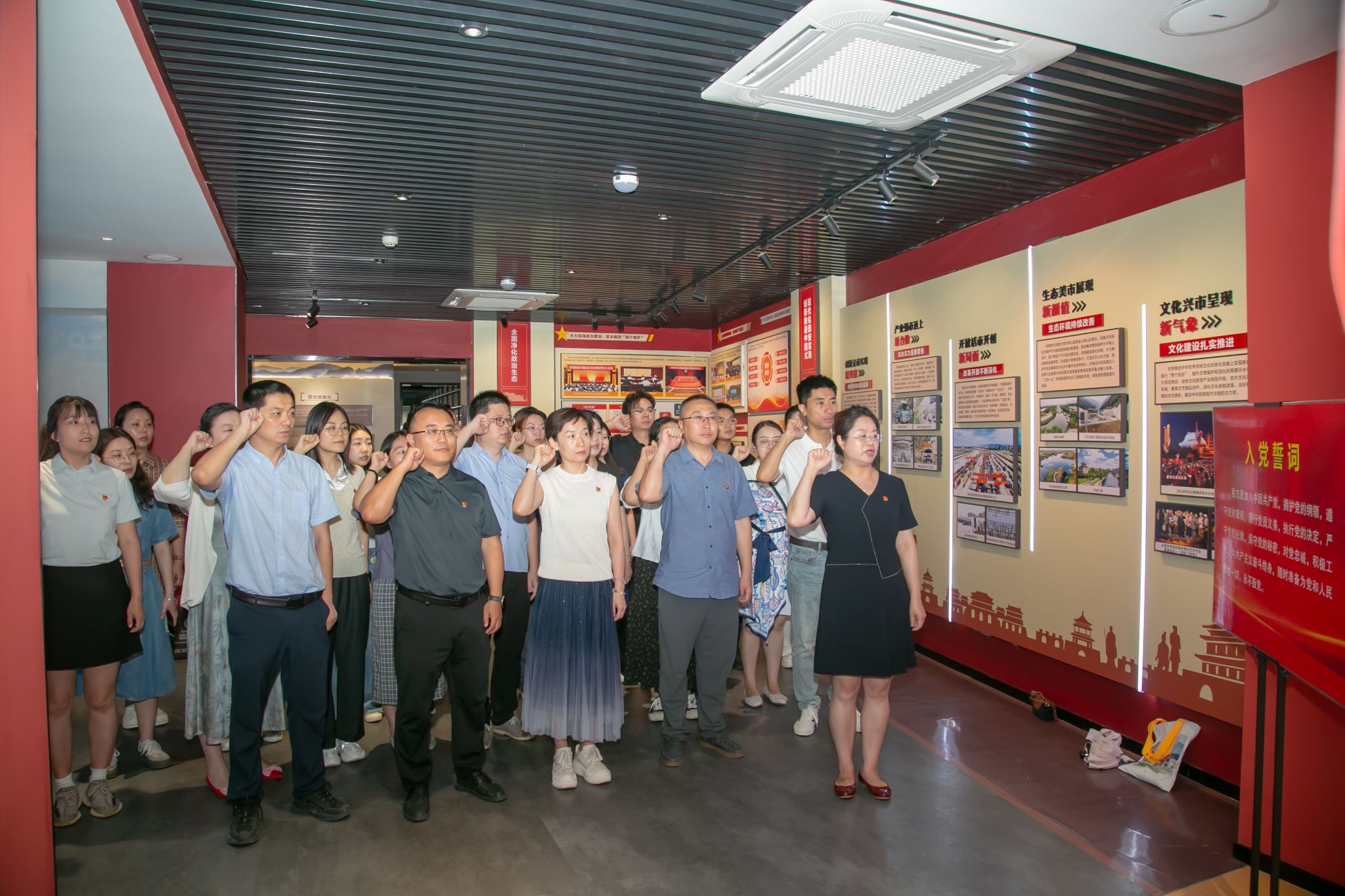 参观结束后,全体党员面向党旗庄严宣誓,重温入党时的铮铮誓言。铿锵有力的誓词表达了党员们坚守初心、永葆本色的坚定决心。