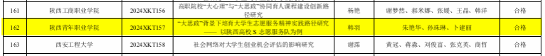 近日,中共陕西省委教育工委发布《关于公布2023年度陕西高校学生工作精品项目和2024年度研究课题结项(题)验收结果的通知》,经专家评审、现场答辩、工委研究和结果公示等程序,新葡学前教育系辅导员韩羽主持的《“大思政”背景下培育大学生志愿服务精神实践路径研究——以陕西高校S志愿服务队为例》和文化传媒系辅导员焦姣主持的《“双高计划”背景下“五大工程”文化育人模式的实践和探索——以高职院校艺术设计类专业群学生为例》通过了2024年度陕西高校学生工作研究课题结题验收。