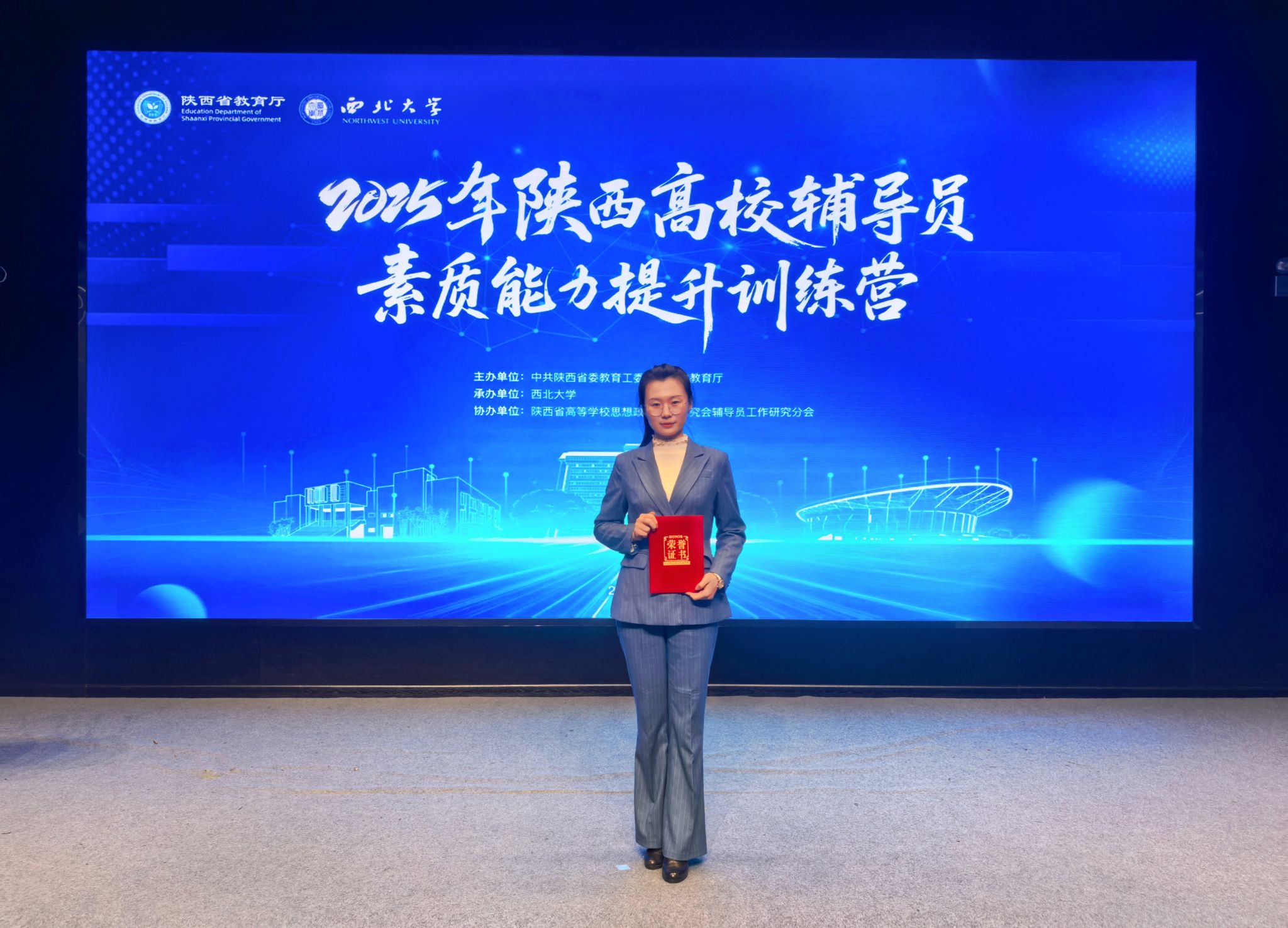 11月5日至7日,由省教育厅主办的2025年陕西省高校辅导员素质能力提升训练营在西北大学长安校区举办。新葡交通运营服务系辅导员康馨月在全省135名参赛辅导员中脱颖而出荣获“最佳风采奖”。