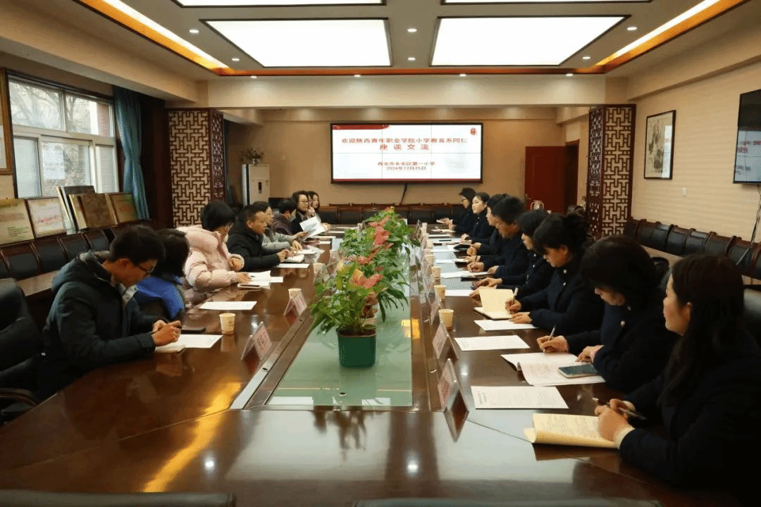 12月25日上午,小学教育系党总支书记、系主任杨西京及小学教育专业教研室全体教师赴长安区第一小学进行研讨交流,该校校长陈阿莉带领相关校领导及教师代表参加。