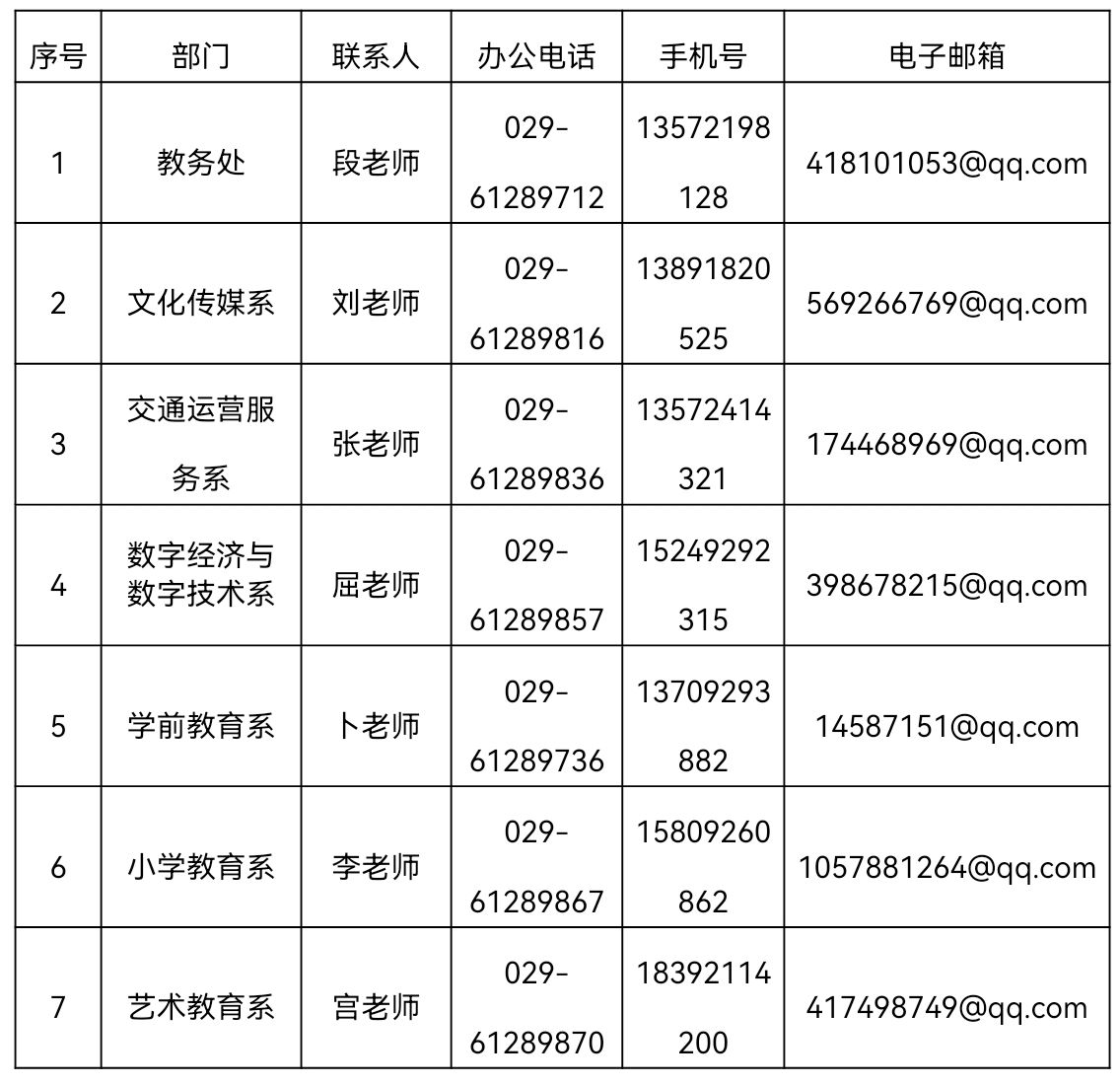 招生就业处:029-61289555 029-61289666 029-61289777(长安校区)