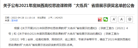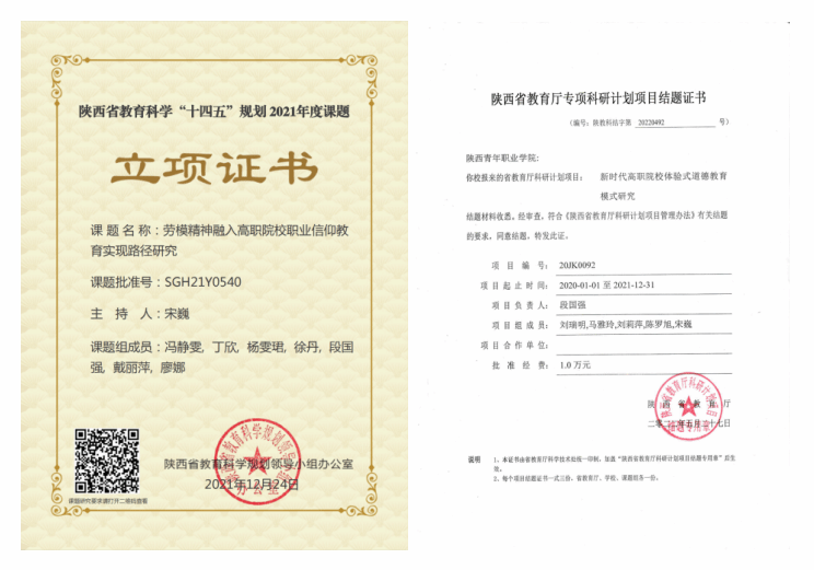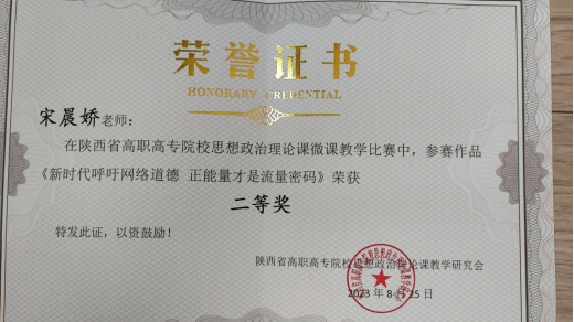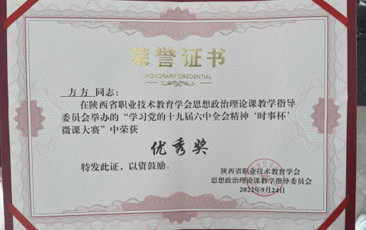 强化以赛促教,帮助教师成长——五年来,教师分别荣获共青团陕西省委“清廉说”演讲比赛三等奖、优胜奖、陕西高校思政课教案比赛二等、三等奖,陕西高校第五批思想政治教育研究项目研究成果优秀奖,陕西省高职高专院校思想政治理论课微课教学比赛二等奖,陕西省高职高专院校“师生畅谈二十大 微宣讲”优秀奖,新葡8883官网AMG官网教学成果特等奖,新葡8883官网AMG官网教学能力大赛二等、三等奖,获评新葡8883官网AMG官网年终考核“创新奖”等。先后涌现出全国高校思政课教学骨干1人,陕西高校思政课教师“大练兵”教学标兵2人、教学能手5人、教学团队能手1个等。