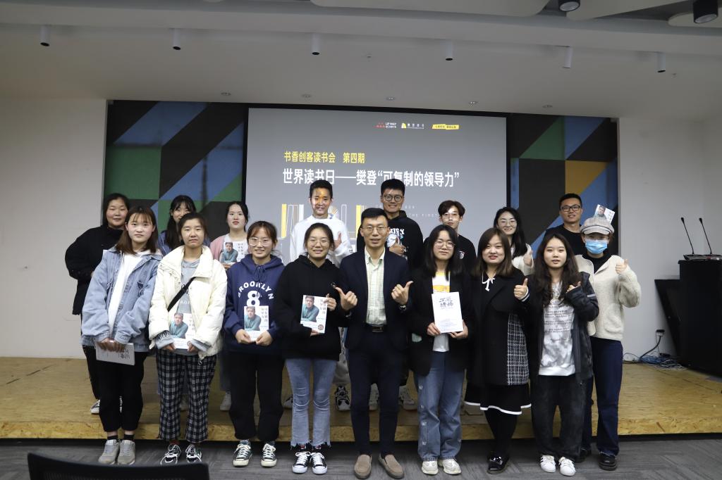 4月23日世界读书日,管理系创新创业实验班组织师生参加由西安曲江创客大街、樊登读书共同举办的“可复制的领导力”书香创客读书会。