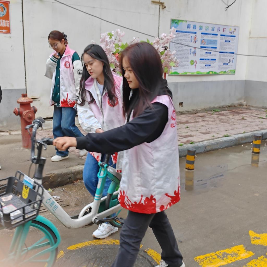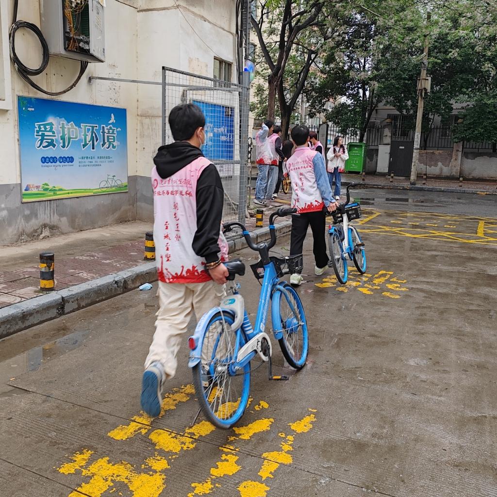 最后,志愿者们在社区组织下开展了“整理共享单车 牵手文明城市”服务活动,劝阻共享单车杂乱停放、电动车乱闯红灯等不文明行为,并将随意停放的单车摆放到指定区域,统一整理归位,引导行人通行。同学们弘扬志愿服务精神,助力城市环境美化,宣传了“文明共享,绿色出行”理念,同时也增强了同学们的自律意识和文明意识,彰显出奉献友爱、互助进步的志愿精神和我院青年学子积极向上的精神风貌。